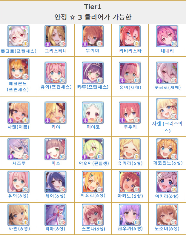 2020년 6월 프린세스 커넥트 티어 등급표 / 전 캐릭터, 퀘스트, 아레나, 클랜전 프리코네 프커넥