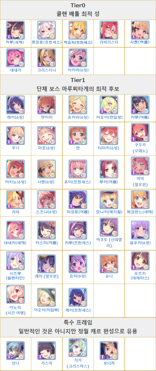 2020년 7월 프린세스 커넥트 티어 등급표 / 전 캐릭터, 퀘스트, 아레나, 클랜전 프리코네 프커넥
